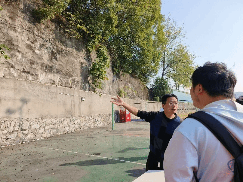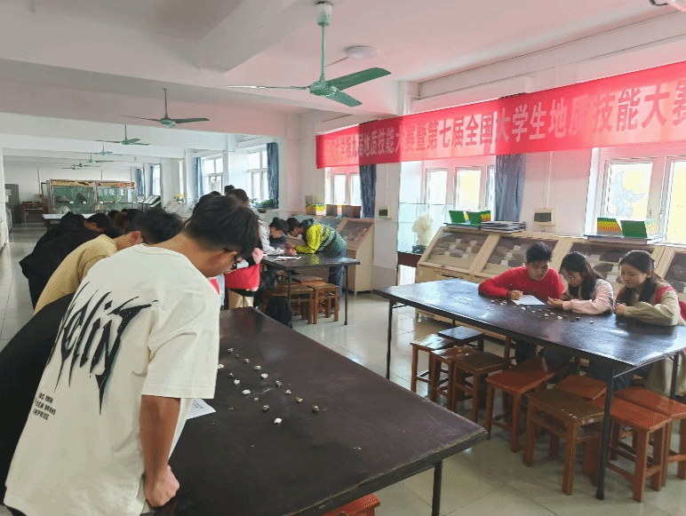 在地质标本鉴定环节,参赛选手以小组形式对常见矿物、岩浆岩、沉积岩、变质岩标本进行鉴定。他们细致观察,认真分析,激烈讨论,以饱满的热情面对比赛。在野外地质技能竞赛环节,各参赛队展示罗盘的基本操作,面对用木板模拟的各种类型的斜坡,各自施展手段。在边坡治理工程识别环节,面对篮球场边坡,很多同学都感到束手无策,但老师们都会向每一组参赛选手讲解思路,让同学们将知识应用于实际。