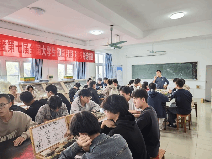 此次大赛的参赛队伍涵盖全校10多个专业的学生。秉持公平公正的原则,大赛组委会把参赛选手分为专业组和非专业组,其中专业组有41组,非专业组有10组,总计141名学生参赛。针对非专业组,赛前2024年11月7日,地质工程系邓黎旭、黄晓虎、党超等老师开展了培训,内容包括罗盘的使用和矿物岩石的识别。