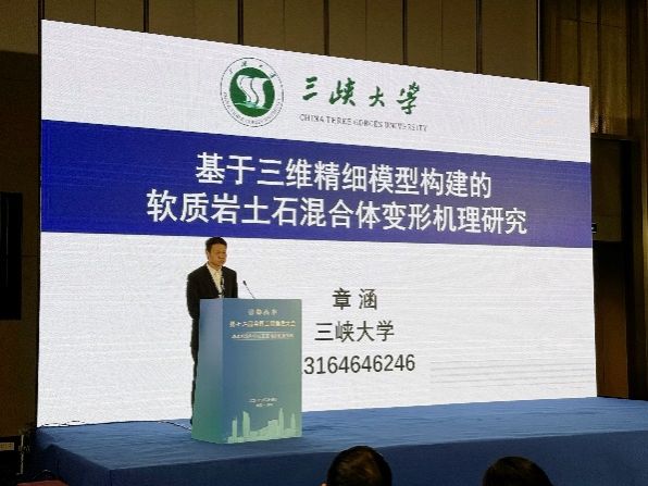 我院左清军副院长、王世梅教授、黄波林教授、黄海峰教授、宋琨教授、刘艺梁副教授、邓茂林副教授、张鹏副教授、章涵副教授以及成书楼等多名研究生代表三峡大学参加了此次大会。会上,左清军副院长做了《软弱膨胀岩相关工程问题研究及处治技术》的特邀报告,王世梅教授做了《水库土质岸坡“侵蚀-塌岸-滑坡”链生灾害力学机制与生态防护》的特邀报告,宋琨教授做了《降雨诱发滑坡渐进破坏至溃散远程滑动机理研究》的特邀报告,章涵副教授做了《基于三维精细模型构建的软质岩土石混合体力学特性及变形机理研究》的学术报告,邓茂林副教授做了《三峡库区大型顺层碎裂岩质滑坡变形破坏机理》的学术报告,张鹏副教授做了《三峡库区劣化带岸坡演化模式及长期稳定性》,刘艺梁副教授做了《基于滑体渗透性与库水变动的典型堆积层滑坡变形滞后规律研究》的学术报告。