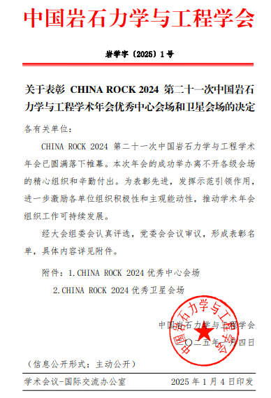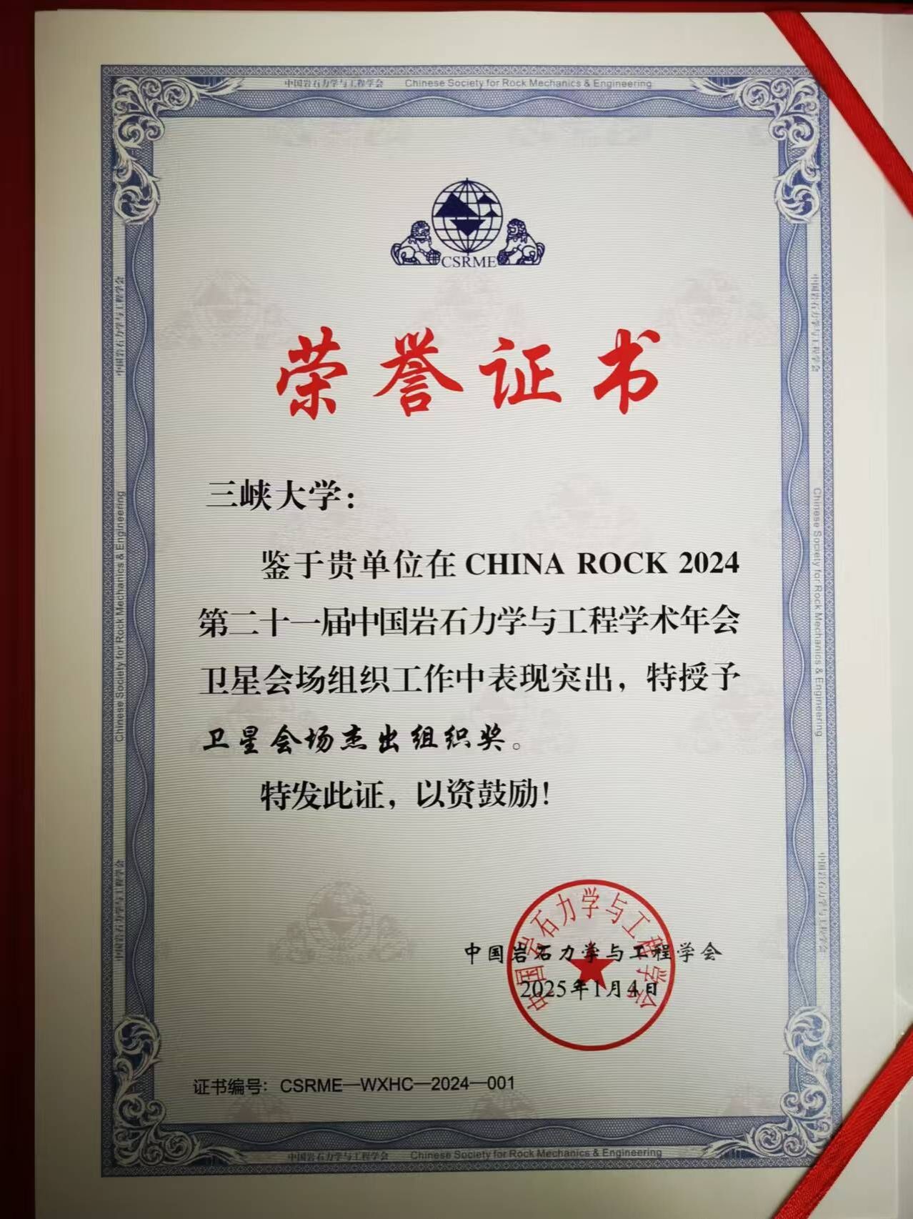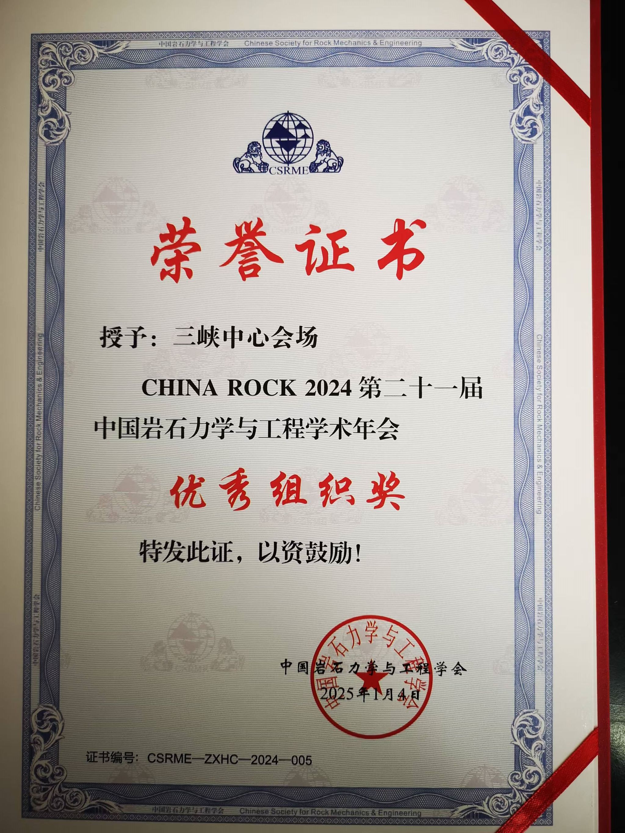 我校承办的CHINA ROCK 2024学术年会三峡中心会场在北京受到表彰