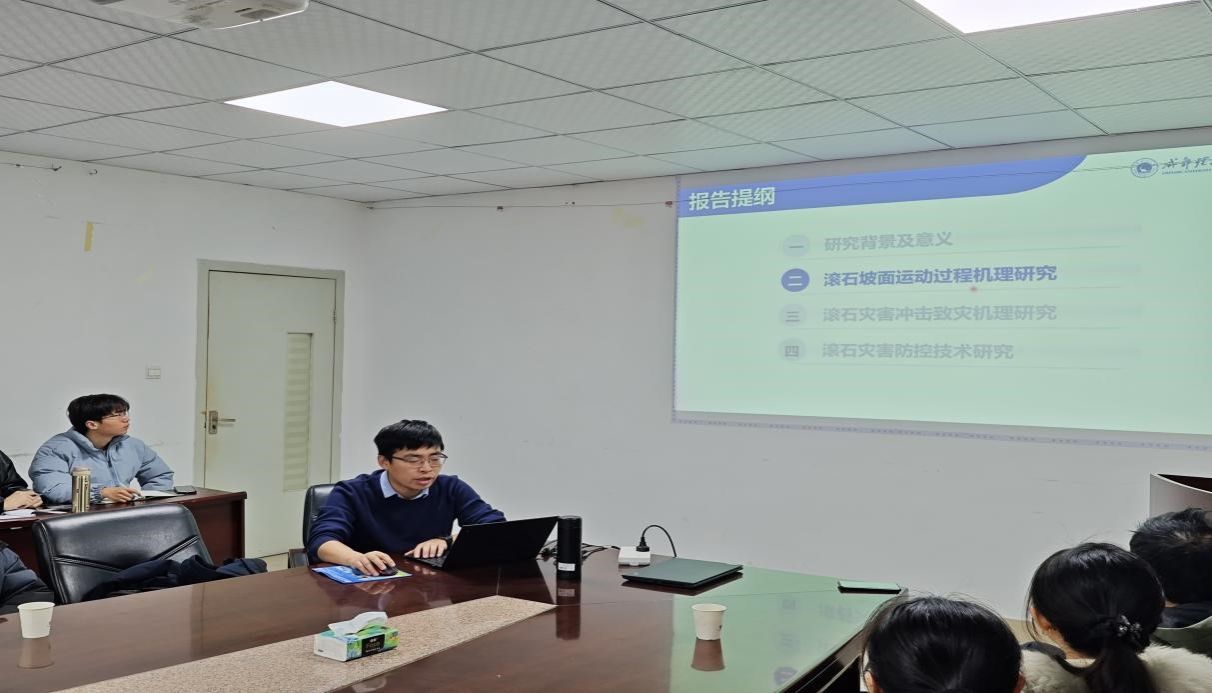 王教授所讲授的滚石灾害减灾技术使现场师生受益匪浅,并与在场师生进行了热烈互动,耐心的回答了师生们提出的关于滚石灾害减灾理论与技术问题,分享了个人在国家基金选题、撰写、基金打磨等方面的独到见解,为大家提供了宝贵经验和思想启示。