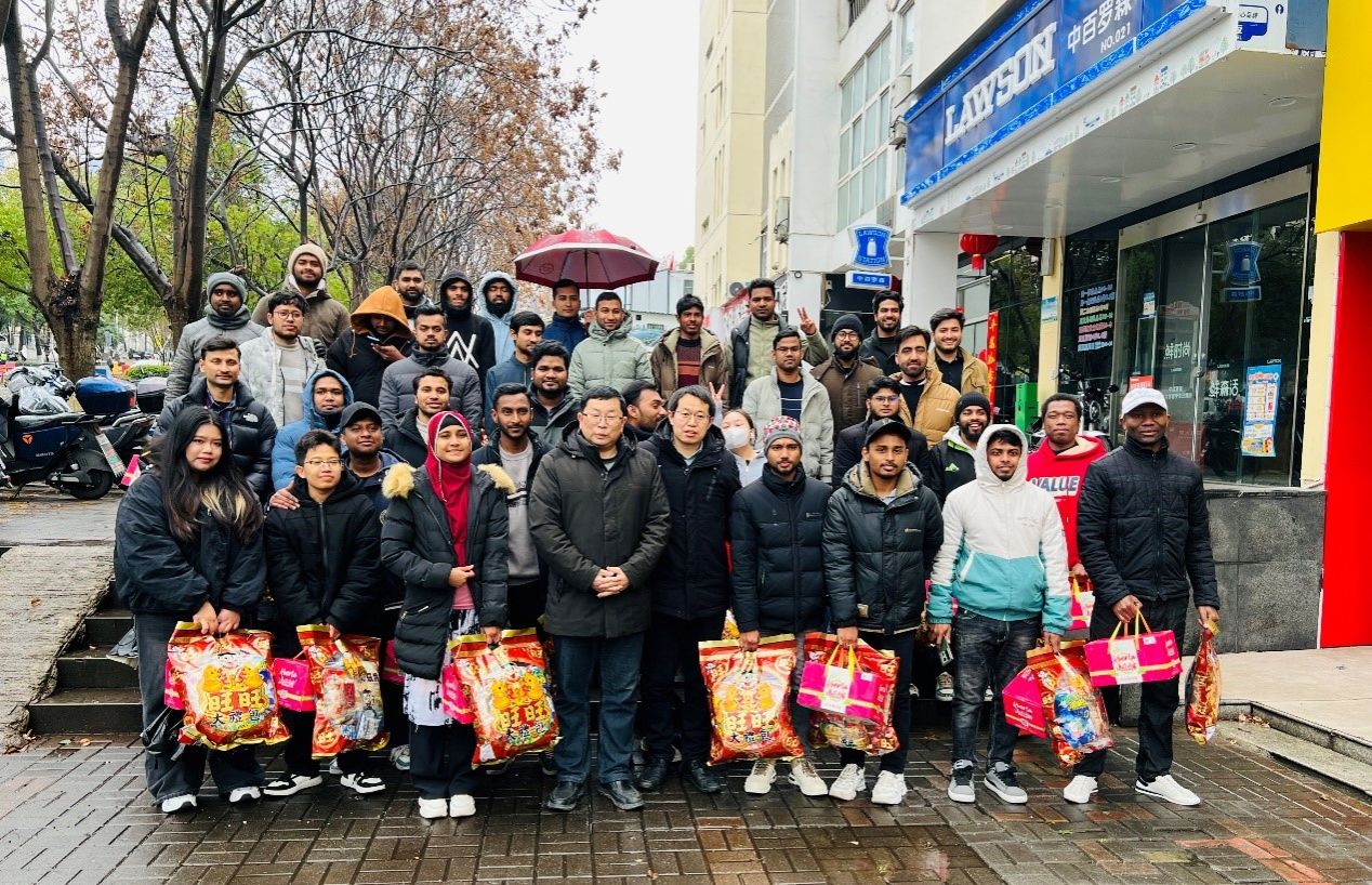 (通讯员 陈兴华) 农历龙年的脚步渐行渐远,2025年春节的钟声即将敲响。为了让寒假留校的留学生们感受到中国春节的浓厚氛围和学院的关怀,1月25日下午,学院副院长陈灯红和陈兴华老师冒雨前往留学生公寓看望慰问寒假留校的留学生,并代表学院向留学生发放了“新春大礼包”,送上新春祝福和关怀。
