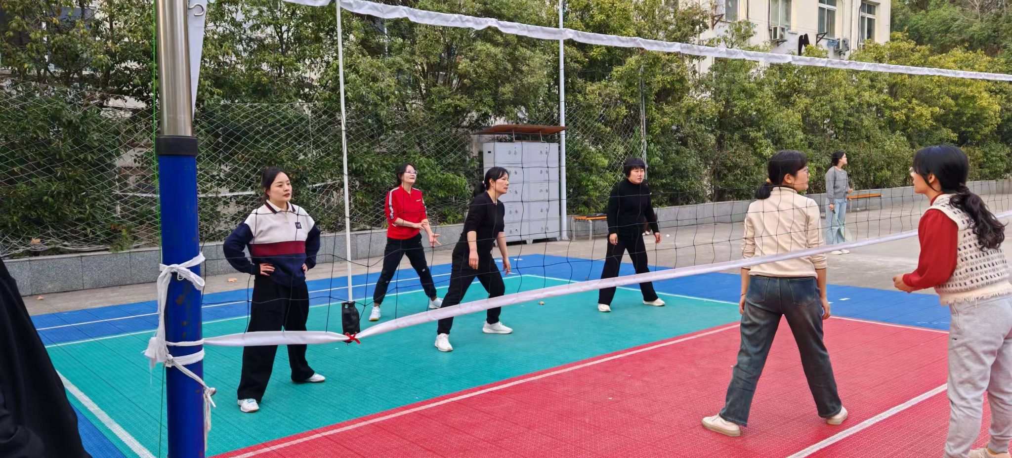 学院工会联合水利与环境学院、图书馆共同开展了气排球培训,并组织了土建-水环-图书馆气排球联谊赛。赛场上,球员们热情高涨,尽情奔跑,在挥洒汗水间搭建起跨院系女教工的交流平台。
