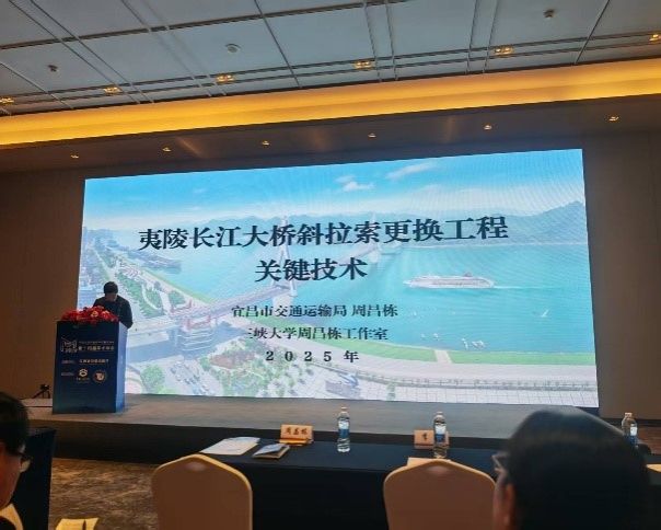 周昌栋教授作为特邀嘉宾,在桥梁缆索防护技术专题论坛作《夷陵长江大桥换索工程关键技术》主旨报告,分享多塔斜拉桥换索关键技术研究成果,期间还与参会单位相互交流探讨缆索体系桥梁的养护难题。
