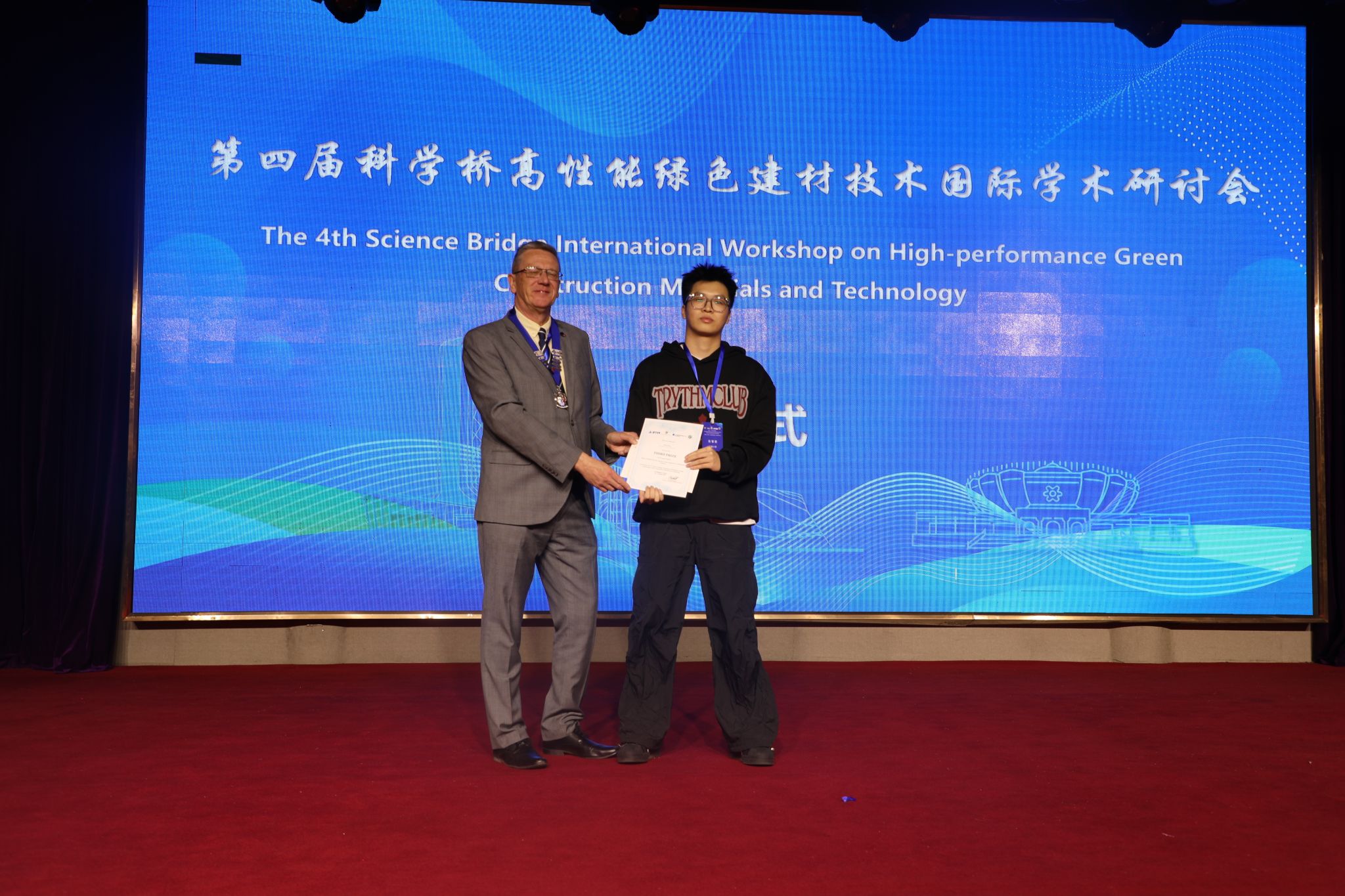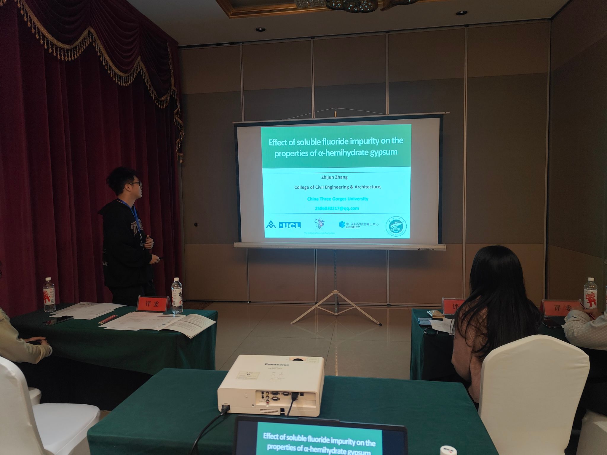 博士生张道明和硕士研究生张智君参与了学生竞赛环节,分别作了题为《Study on Bonding Performance Between Lightweight Ultra-High Performance Concrete and Steel Bar》和《Effect of Soluble Fluoride Impurity on the Properties of α-Hemihydrate Gypsum》的报告;硕士生张智君在学生竞赛环节中获得三等奖。