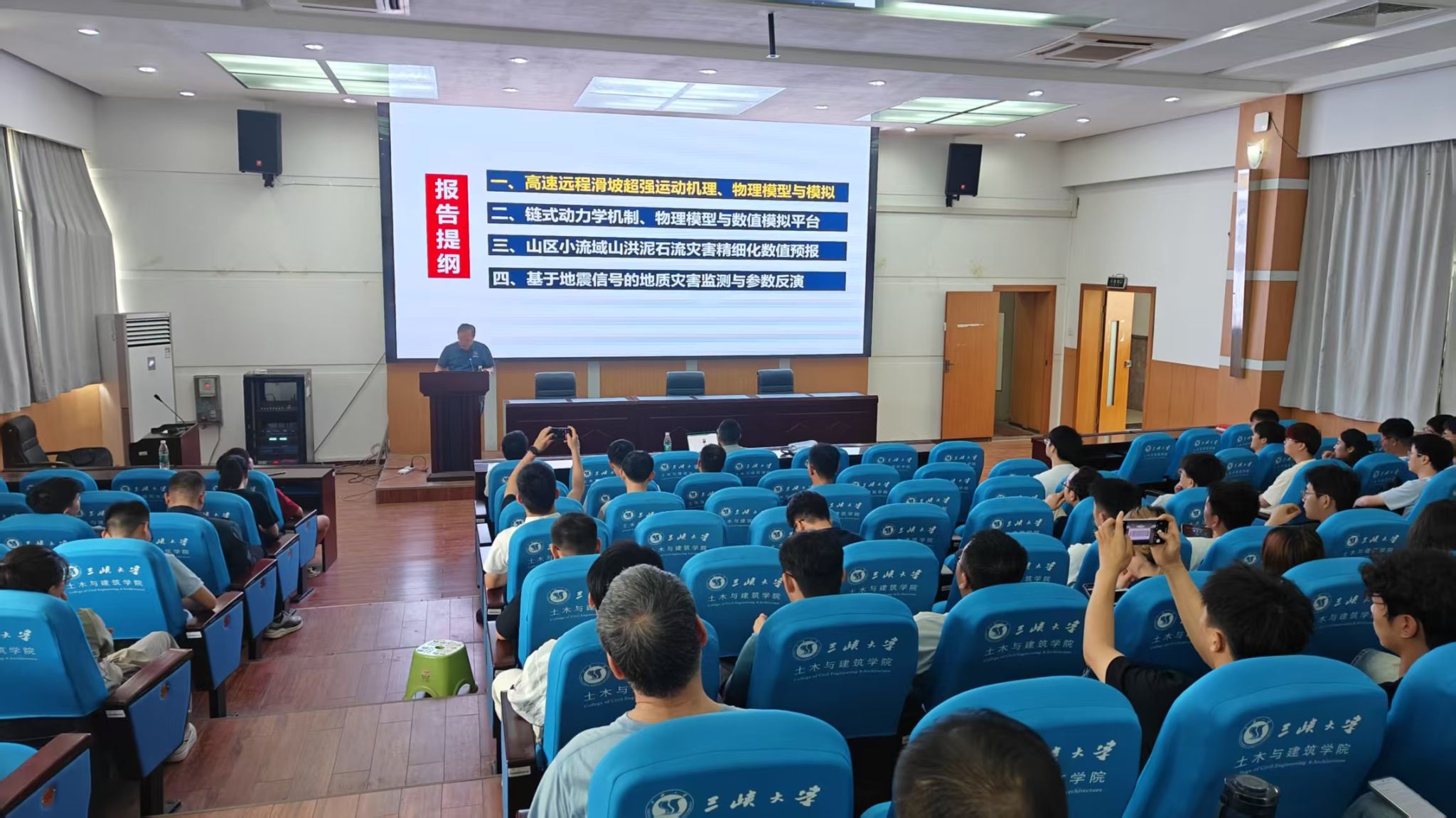 讲座内容分享结束后,师生们纷纷积极提问。何思明研究员针对如何利用地震数据与深度学习模型对西藏天摩沟泥石流进行监测预警、如何区分地质灾害与人类活动产生的地震信号、如何实现高效的大规模复合链生灾害数值模拟等问题,进行了耐心地逐一解答,并从专业视角为师生们上了一堂内容丰富的专业课。