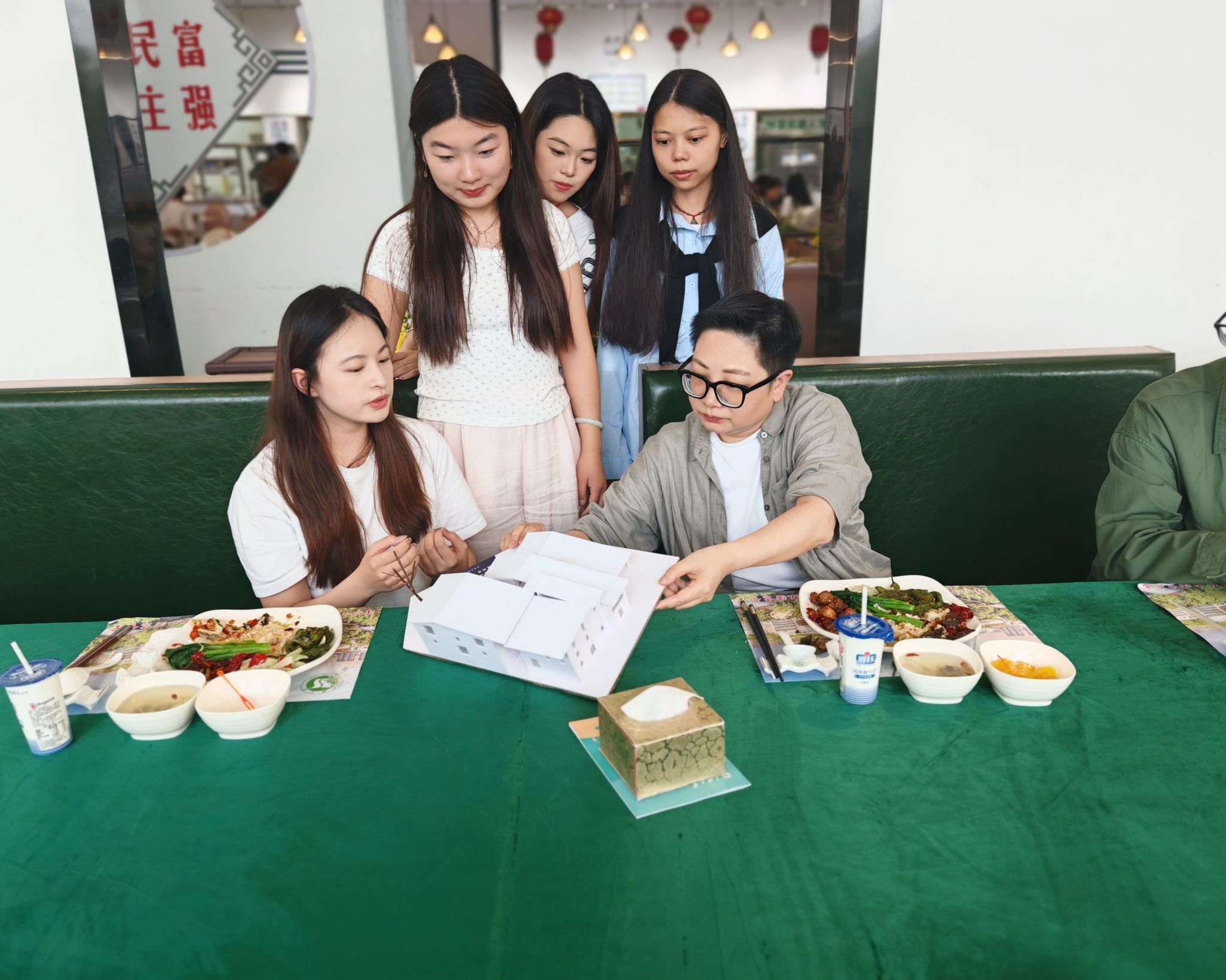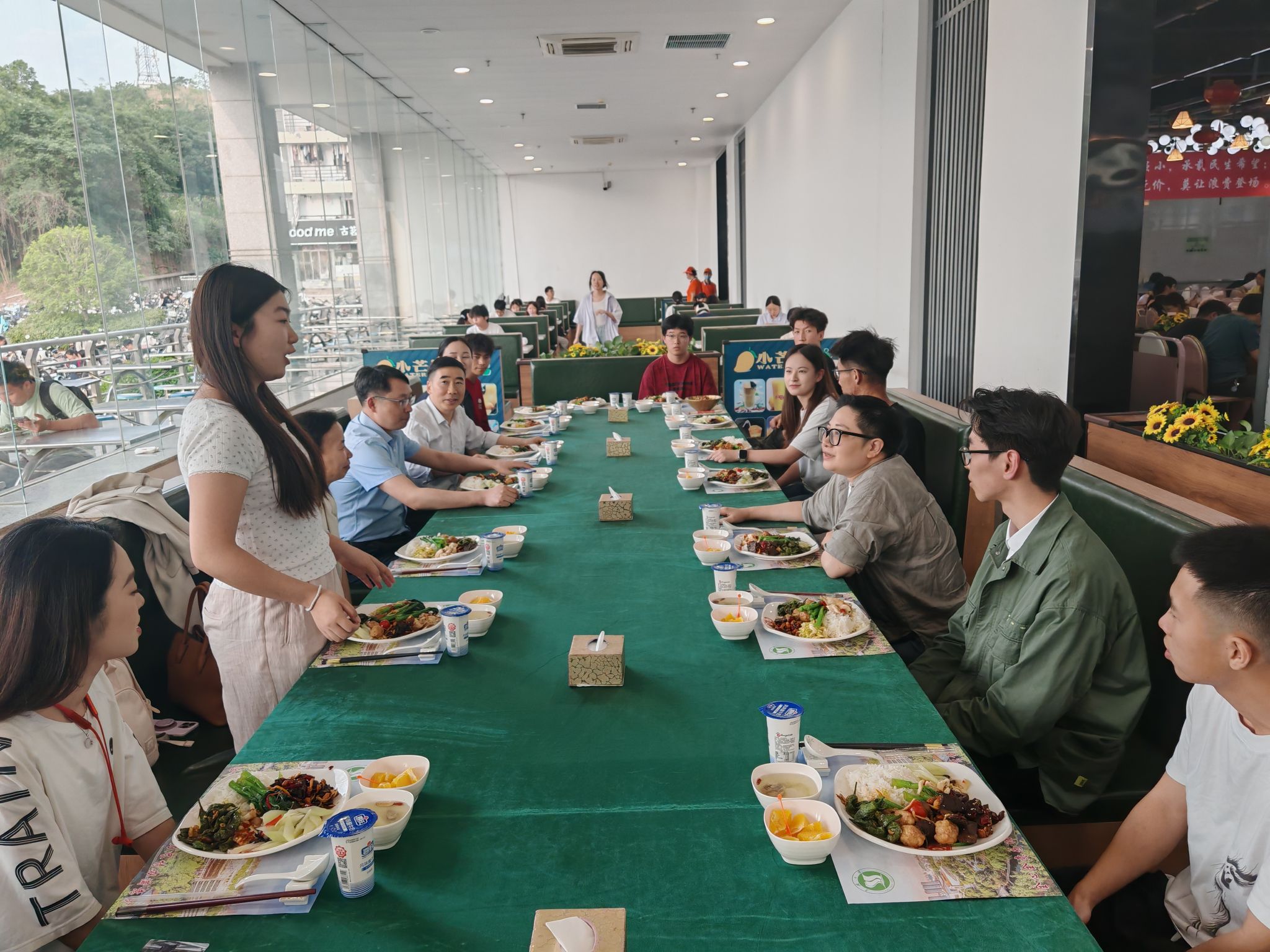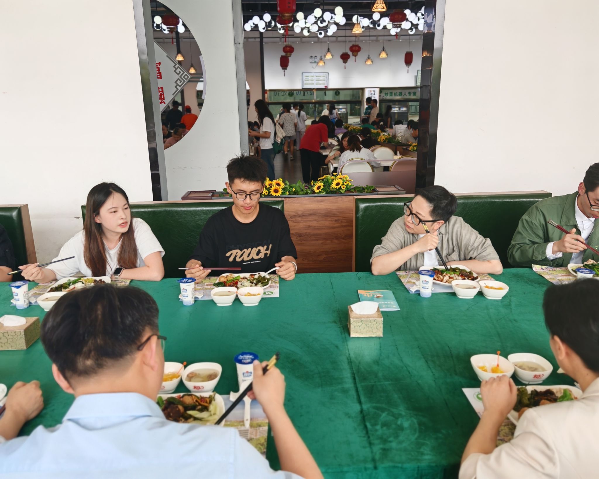 就餐过程中,黄艳校长亲切地询问同学们的学业发展、校园生活、未来规划等情况,同学们也纷纷敞开心扉,分享自己在学校的收获与困惑。“黄校长,我们希望将我们的课程与人工智能、大数据等新技术结合起来。”“黄校长,课程改革能不能也普及到高年级的同学们?” 面对同学们提出的问题和建议,校长黄艳认真倾听,不时点头回应。她表示,同学们所反映的问题也是当下学科建设与改革的方向。这些意见和建议对学校发展至关重要,学校会尽快研究解决方案,努力为同学们创造更好的学习和生活环境。