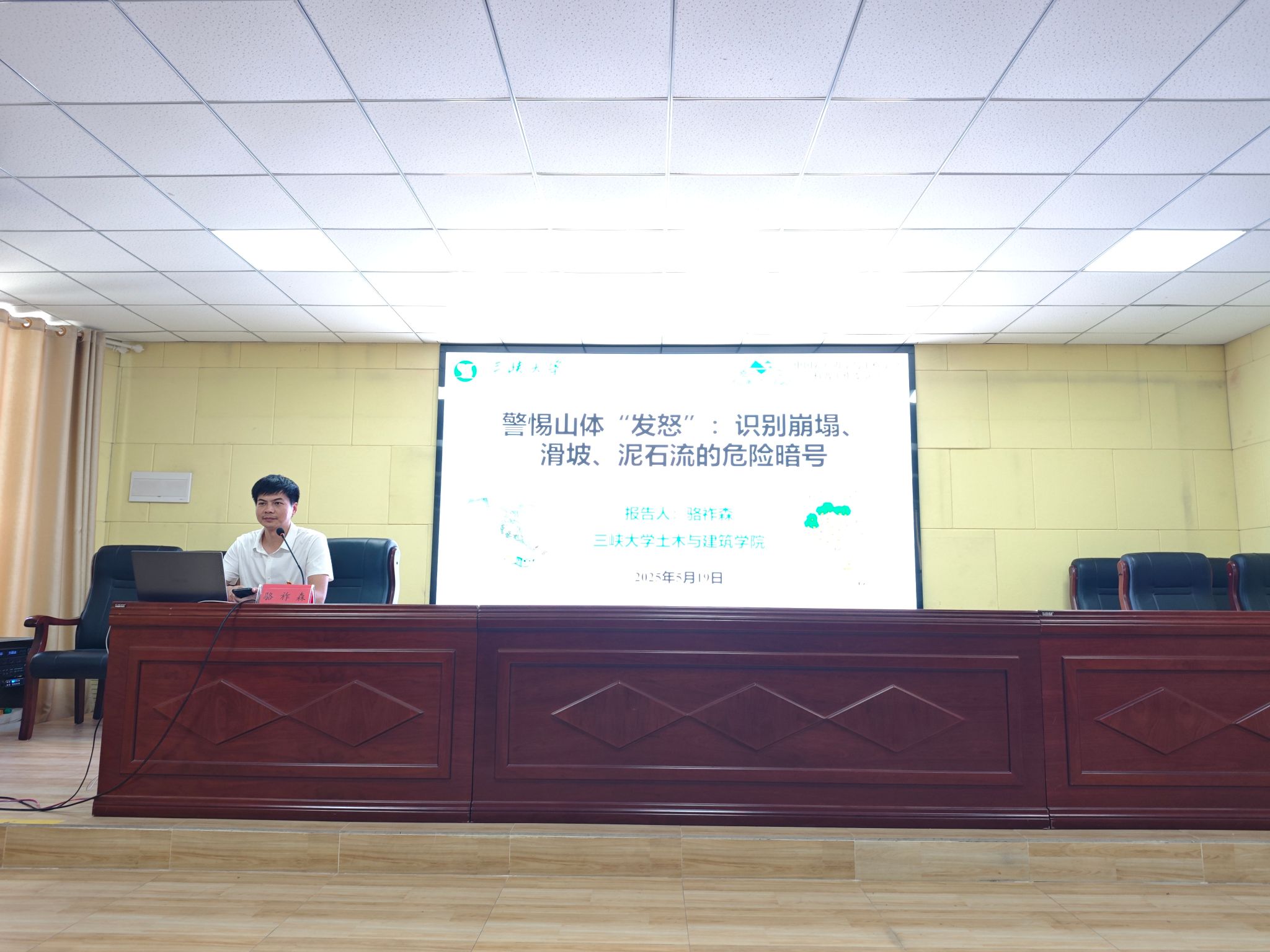 活动伊始,全体党员面向党旗重温入党誓词,双方党支部开展深入贯彻中央八项规定精神学习教育交流,结合工作实际分享学习心得。骆祚森老师为学校师生讲述了专题科普报告,深入浅出地讲解了地质灾害的类型、成因及发生的前兆,在场人员受益匪浅。