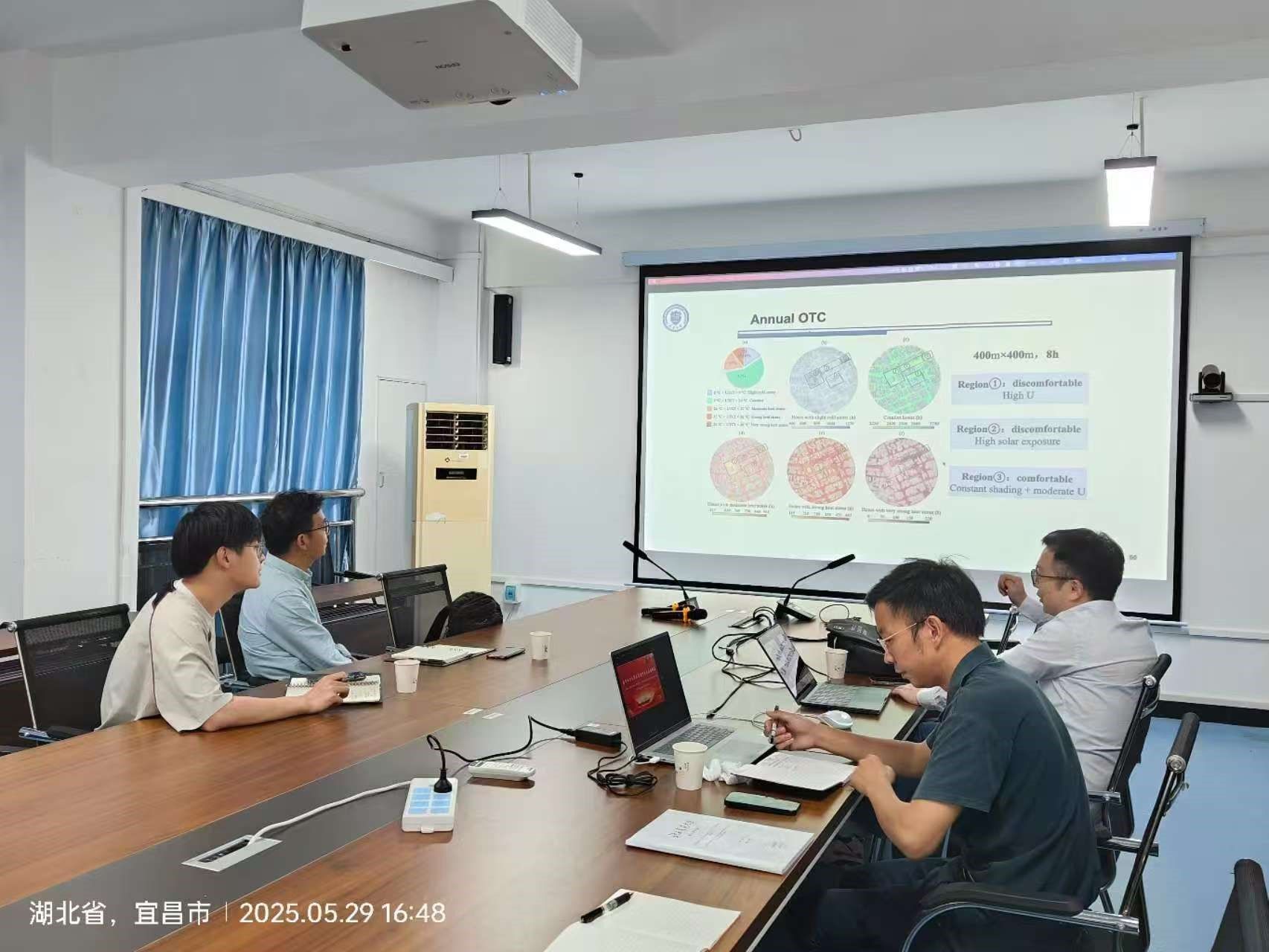 刘炜教授首先分享了他在美国普渡大学、瑞典皇家理工学院、浙江大学以及天津大学的相关研究成果。刘炜教授主要从事计算流体力学与机器学习、建造环境的逆向设计、优化及控制方面的研究,会上他介绍了他们团队开发的快速流体力学计算模型(FFD)、基于深度学习的湍流模型等研究成果,该成果被应用于我国C919大飞机空调送风系统优化、城市街区尺度室外风热环境优化等领域。会后,许华华、李文强、唐培傑三位老师分别介绍了自己目前拟申报的课题,并请刘炜教授进行了一对一的指导。