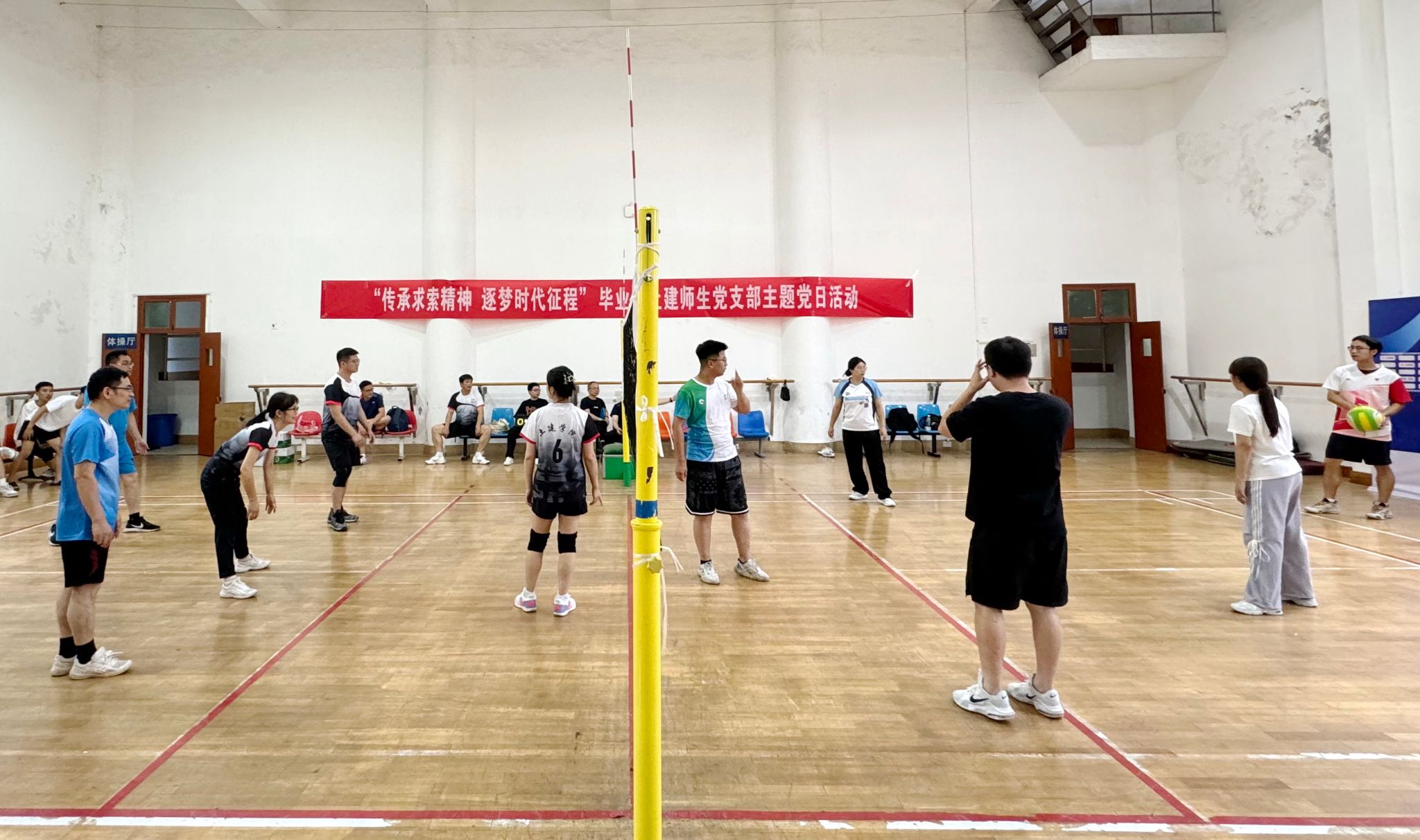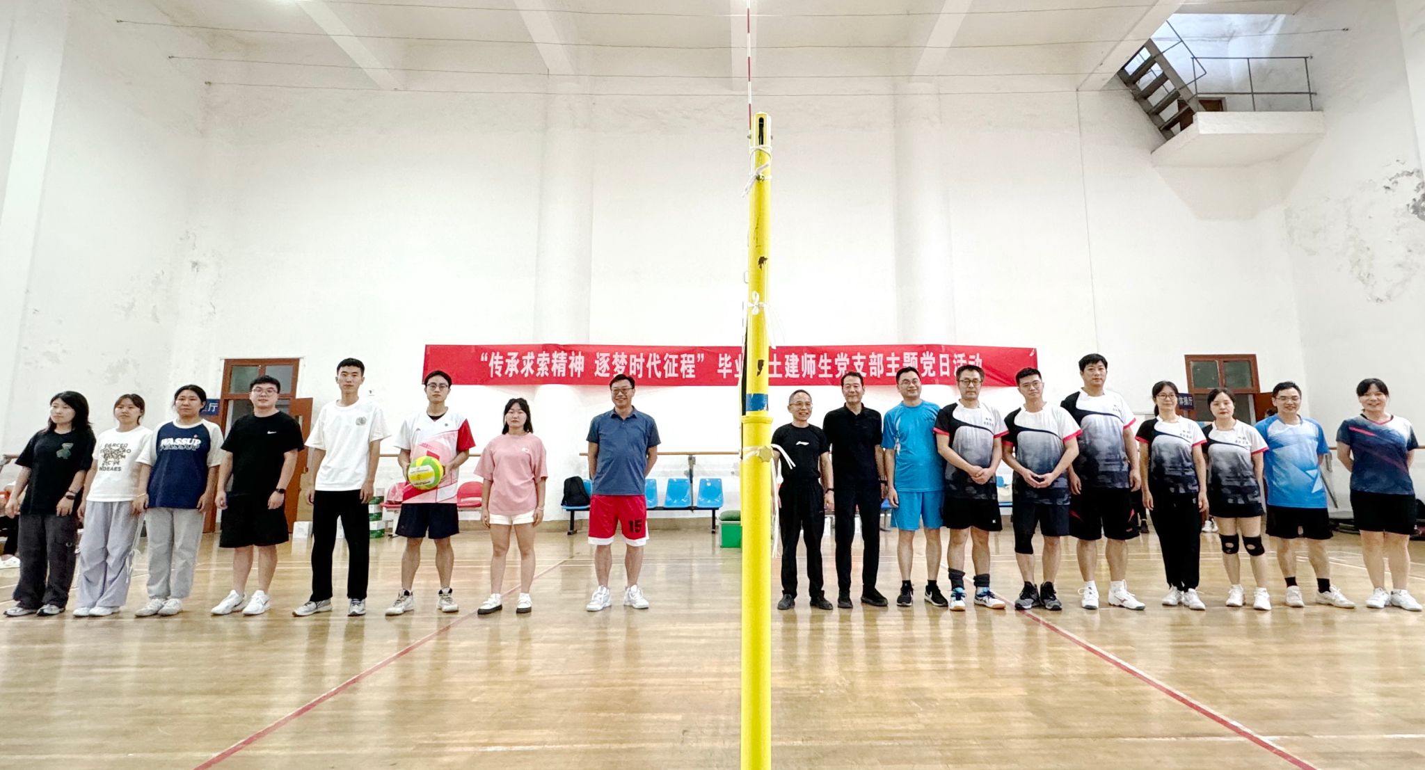 活动最后,师生在校体育馆体操厅举行了气排球联谊赛。工会主席陈勇和院党委组织员颜俊学主持比赛,鼓励毕业生在新岗位上发扬“求索”精神。赛前,学院为毕业生党员颁发了精美的毕业纪念品,寄托了对他们的美好祝愿。比赛中,六支师生队伍默契配合,展现了土建人团结拼搏的风采,现场欢声笑语不断,师生情谊在竞技中得到升华。
