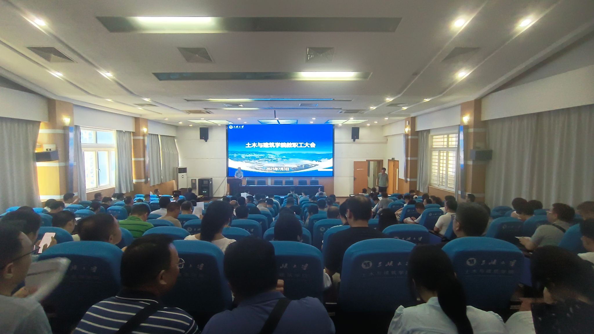 (通讯员 徐理)7月3日,土木与建筑学院在地学楼报告厅召开春季学期末教职工大会。会议由学院党委书记张国栋主持。