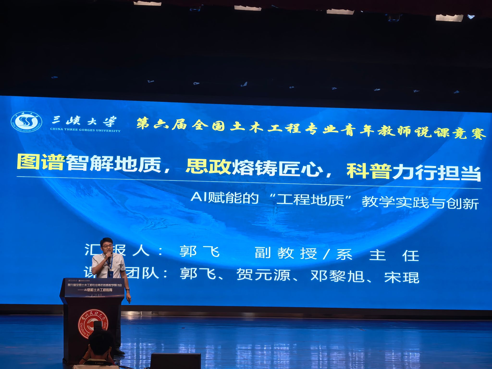 研讨会期间同时举办青年教师说课竞赛,竞赛分为初赛与决赛两个阶段,共有来自全国各高校的100余名青年教师同台竞技。我院郭永成、赵二平、郭飞、陈柳灼四位老师分别以“AI图谱赋能助学、数智化工程计价”、“知识-创新-成长引领的《土力学》课程教学实践”、“图谱智解地质、思政熔铸匠心、科普力行担当”和“智汇钢构、慧启课堂”主题参加本次比赛,初赛中四位老师均位居各自小组前7名,其中陈柳灼、郭飞老师均以小组前2名进入决赛。决赛阶段,8位选手激烈角逐,最终陈柳灼、郭飞老师分别以第2名、第4名的好成绩荣获一等奖,赵二平、郭永成老师分获二等奖和三等奖。
