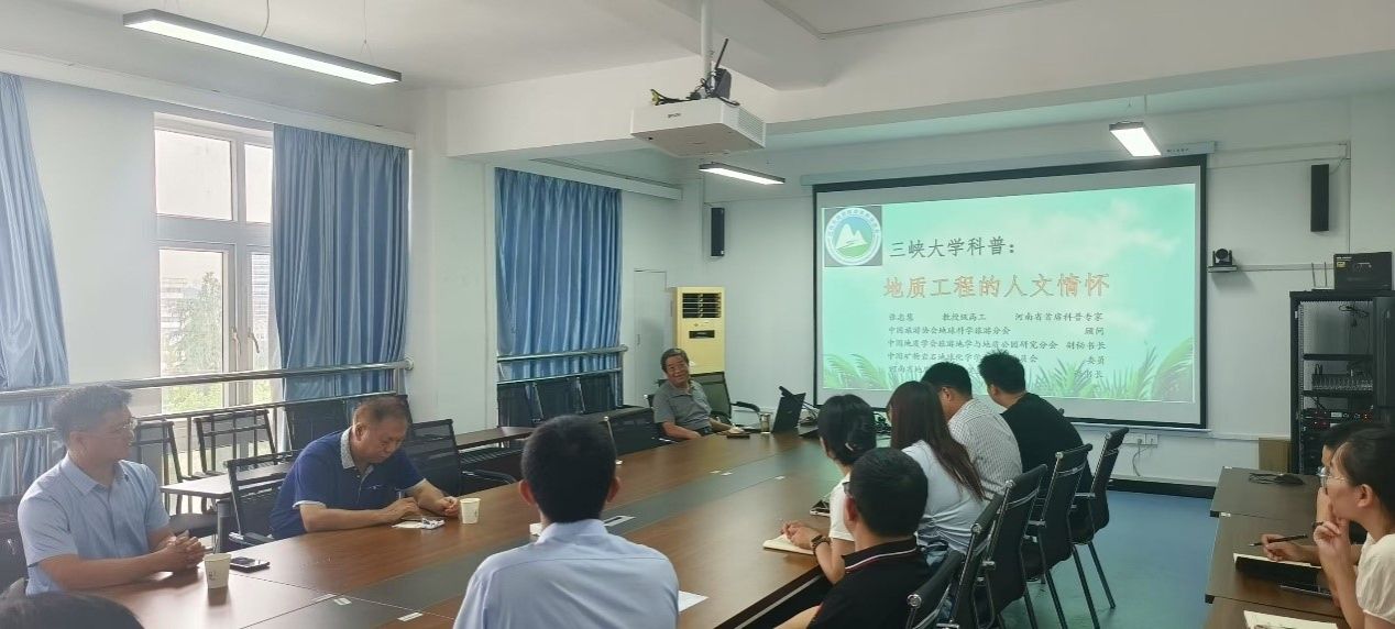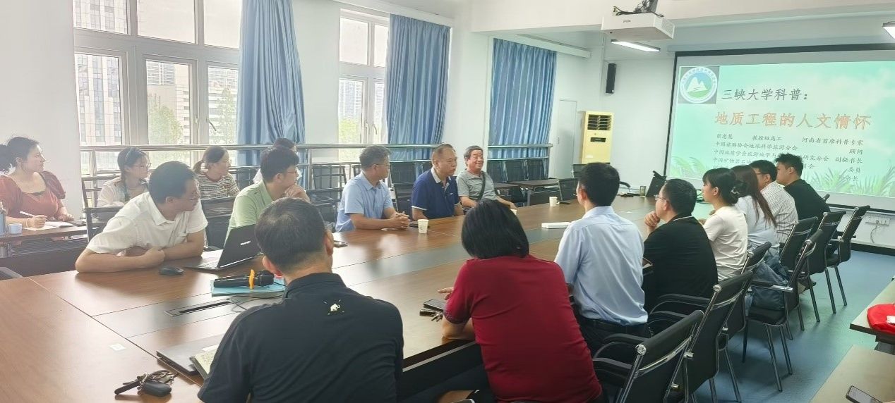 (通讯员 贺元源)2025年9月8日,受郭飞老师邀请,河南省地质科普首席专家张忠慧教授级高工、河南理工大学资源环境学院张国成教授及河南省地质研究院首席专家章秉辰一行三人来我院交流座谈。邓华锋院长介绍了学院近年来在地质科普方面的系列工作及取得的相关成果,并就三峡地区的地质科普资源的深入挖掘与发扬同专家开展了讨论。三位专家就地质与旅游的学科融合及地质科普的相关内容同在场师生开展了交流讨论,介绍了自己在旅游地质、地质科普等方面的经验与理论。