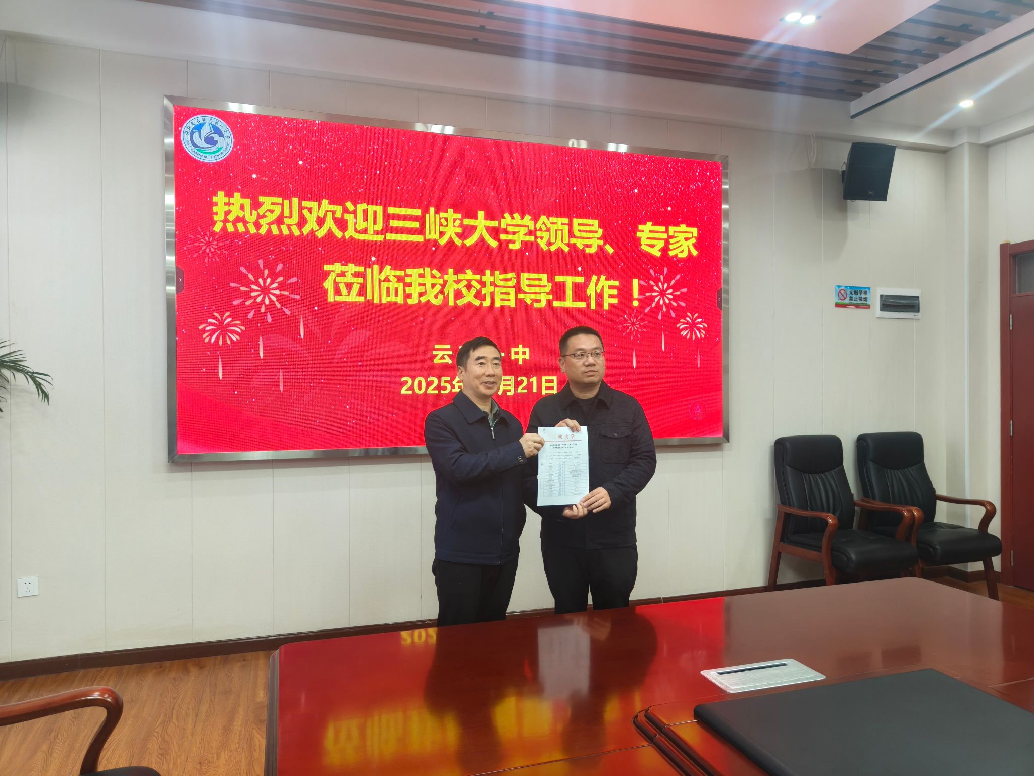 下午,招生宣传团队转赴云梦一中,继续开展交流与宣讲活动。在与云梦一中校领导及高三教师的座谈中,谢晓庆副书记再次全面介绍了三峡大学的整体情况,并围绕学校地理位置、办学实力、校园环境及就业前景等方面作了重点推介。并向云梦一中送上感谢信,表达对高中长期以来为我校输送优秀学子的诚挚谢意。