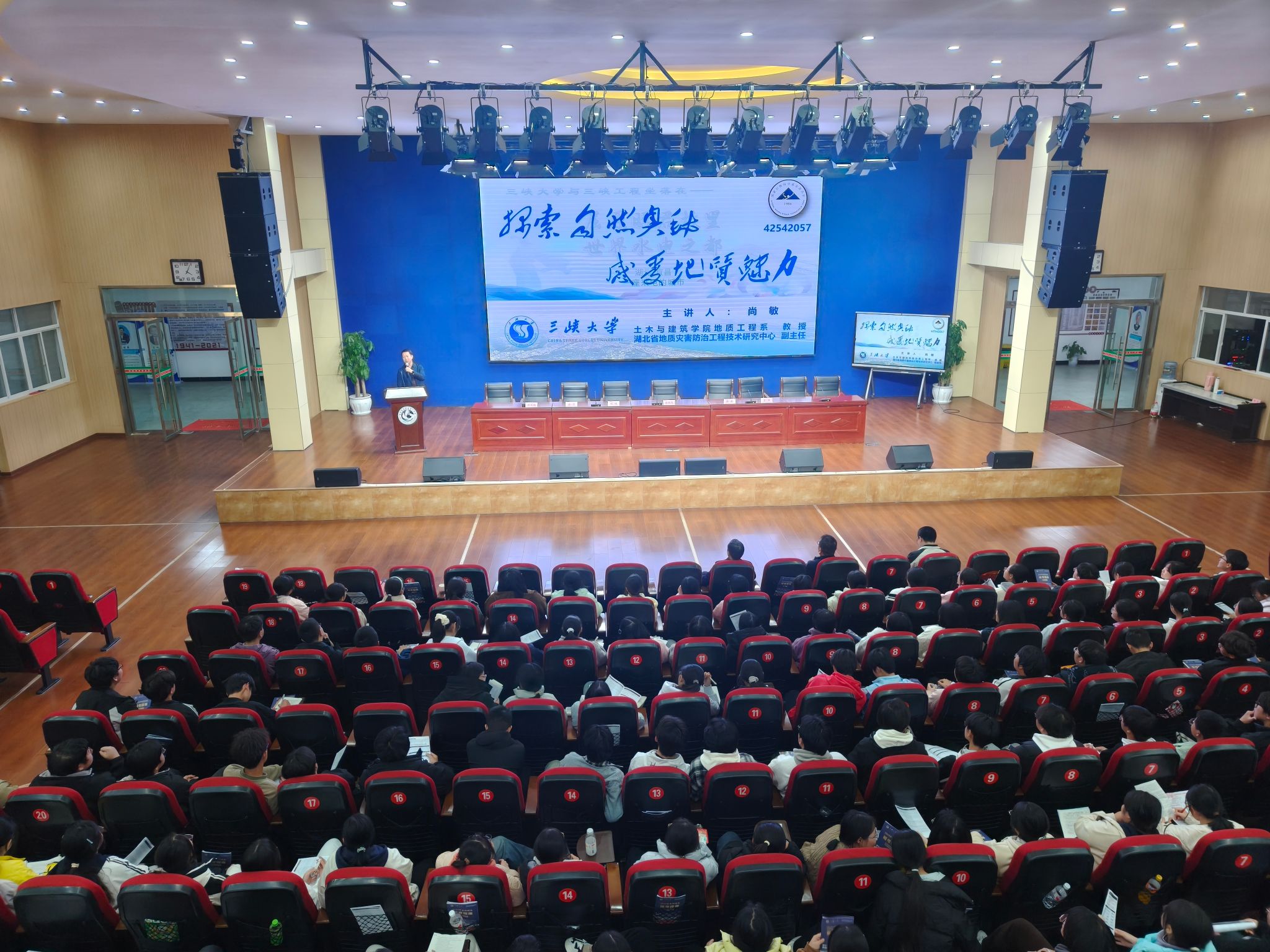 在给云梦一中同学们的讲座中,他诚挚邀请同学们报考三峡大学,并欢迎大家加入土木与建筑学院。随后,尚敏老师为选考地理的学生带来了一场题为《探索自然奥秘,感受地质魅力》的科普讲座。讲座内容生动有趣,不仅激发了同学们对地质科学的浓厚兴趣,还详细介绍了我校地质工程专业的人才培养模式与发展前景。现场互动热烈,尚敏老师为踊跃回答问题的同学送上了学院精心准备的地质矿石及古生物化石纪念品,进一步增强了学生对地质工程专业的认同感与报考意愿。