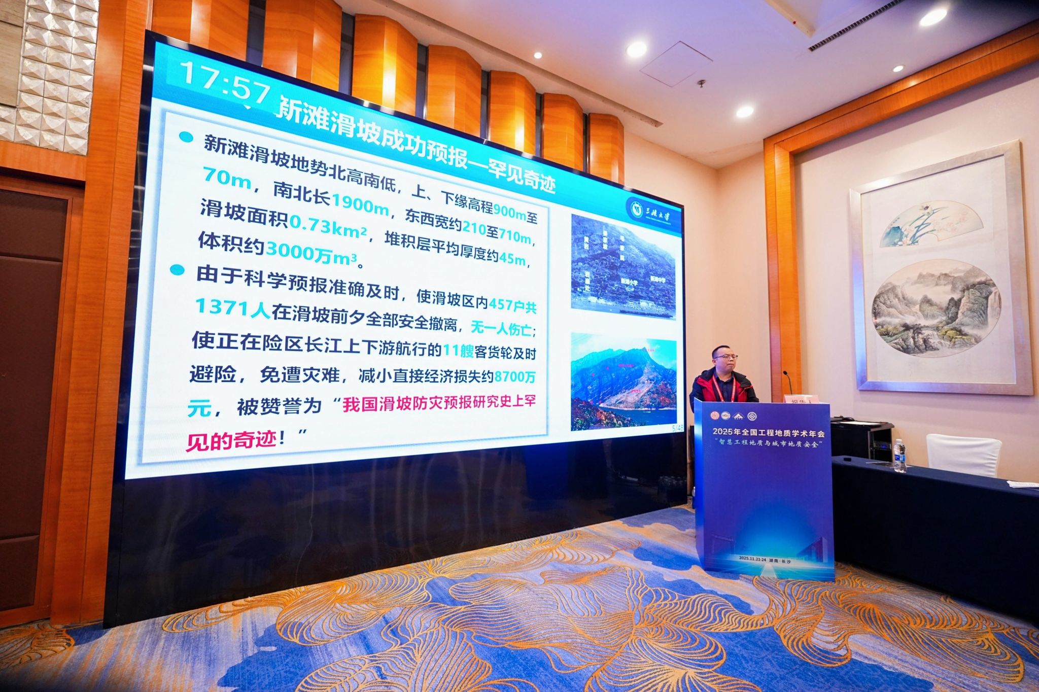 (通讯员 王力)2025年11月21-24日,2025年全国工程地质学术年会在湖南长沙召开。本次会议由中国地质学会主办,中国地质学会工程地质专业委员会和中南大学承办,国家自然科学基金委员会等42家单位协办。中国科学院院士、中国地质学会工程地质专业委员会名誉主任委员彭建兵教授和中国科学院院士、中国地质学会工程地质专业委员会主任委员唐辉明教授担任会议学术委员会主任,会议吸引了国内相关高校、科研院所、企业代表1800余人现场参会,线上参会突破164万人次。