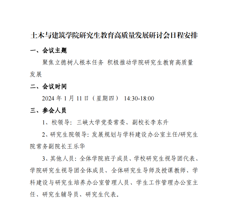 关于三峡大学土木与建筑学院研究生教育高质量发展研讨会的会议通知