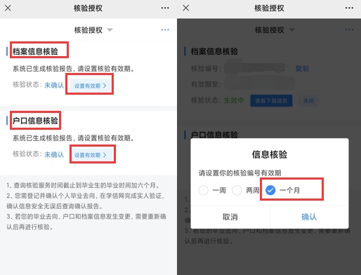 去向确认结束后,即可生成《全国普通高等学校毕业生去向登记信息》,部分国央企入职时需作为手续材料提交。部分地区人才中心(档案接管单位)在接收毕业生档案和户口时,作为校验手段。也会要求提供该表以核验档案转递信息。因此在生成核验报告时,请尽量选择时间较长的选项。