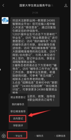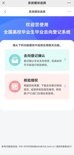 毕业生核对本人毕业去向、档案转递、户口迁移等信息,若信息无误,选择“信息无误,确认登记去向”提交。