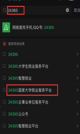微信搜索“24365”国家大学生就业服务平台,并授权