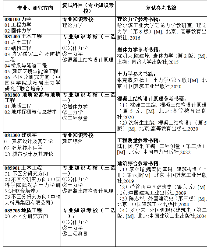 力学(学硕/080100)、土木工程(学硕/081400)、地质资源与地质工程(学硕/081800)、建筑学(学硕/081300)、土木工程(专硕/085901)、地质工程(专硕/085703):总分和单科分数线均为教育部公布的2025年A类地区考生分数线。