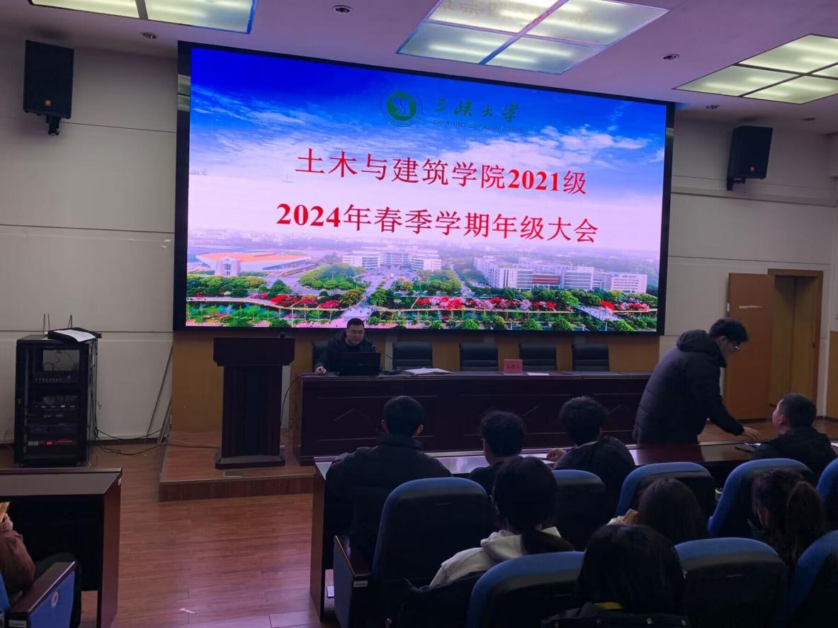 2024年3月4日晚,土木与建筑学院2021级本科生召开了春季学期第一次全体大会。学院2021级辅导员吕果老师主持会议。