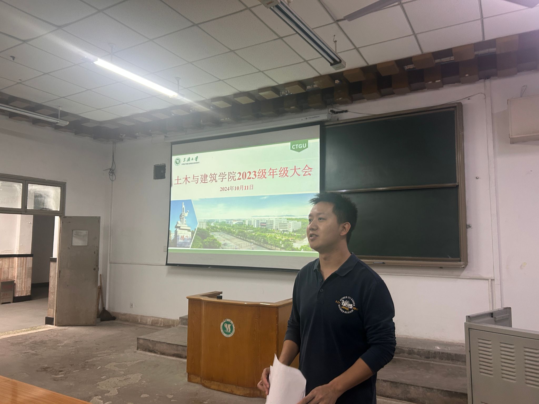 10月11日晚,学院于水电楼101教室召开2023级年级大会。本次大会由2023级本科生辅导员黄浩东老师主持,会议内容包含上学期学习成绩分析、防诈骗宣讲和加强舍风班风建设三个方面,2023级全体学生参加会议。