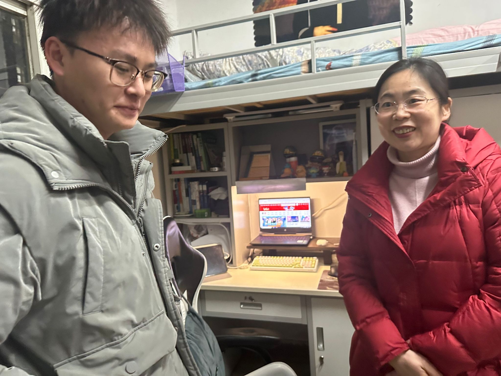 走访过程中,领导们仔细查看了宿舍的卫生状况、物品摆放以及安全设施等。他们对学生的宿舍环境表示了肯定,并鼓励学生们继续保持整洁有序的宿舍环境。在23级新生宿舍,领导们细致询问了他们入学以来的适应情况,耐心回答同学们提出的问题,提醒同学们要遵守宿舍管理规定,注意用电安全,养成良好的生活习惯,营造温馨、舒适、和谐的寝室氛围,同时鼓励同学们要珍惜大学时光,努力学习专业知识,积极参加各种社会实践活动,不断提升自己的综合素质和专业能力。