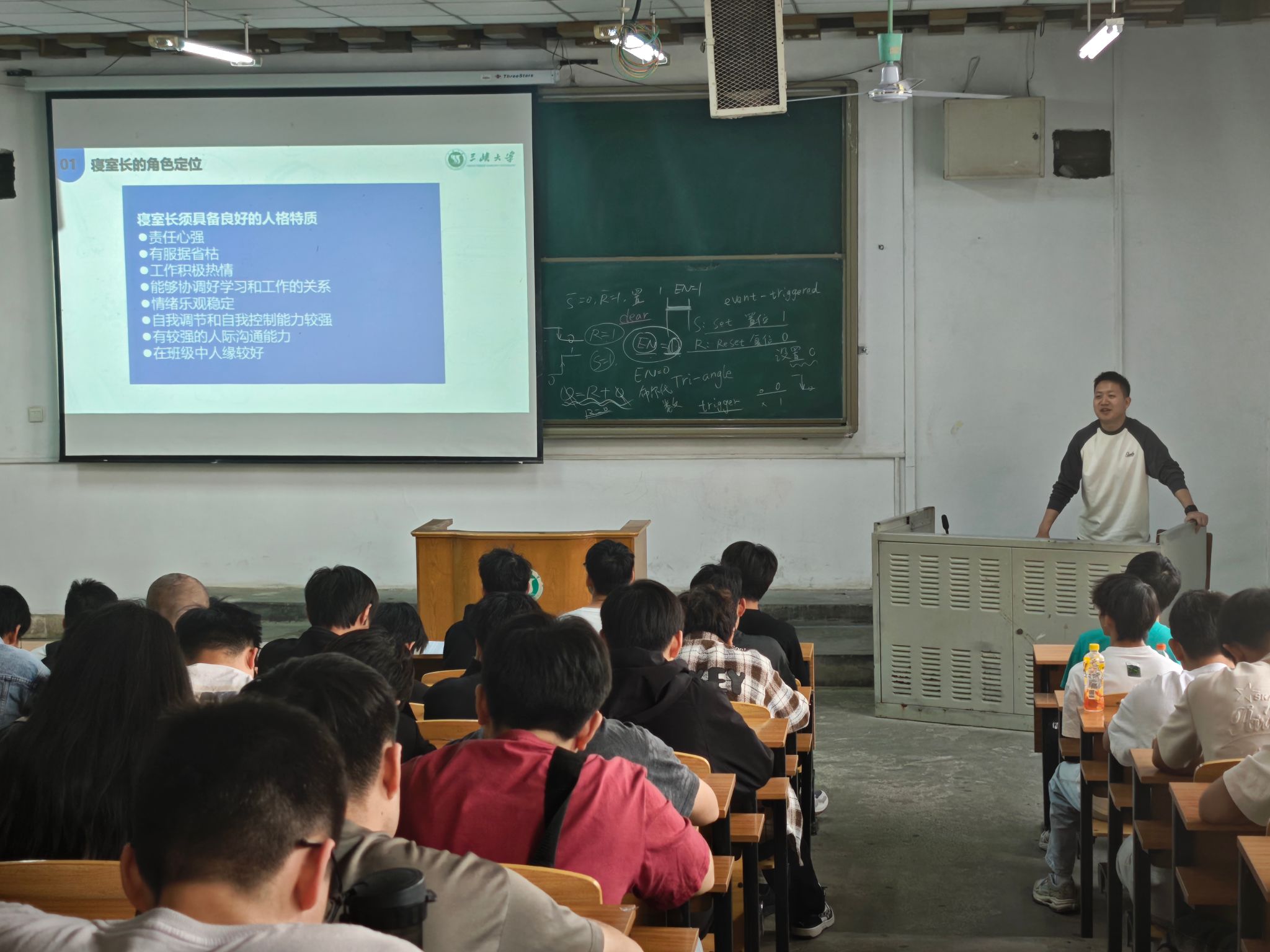 为进一步加强学生寝室管理,发挥寝室长在学生日常教育管理中的积极作用,3月27日下午,土木与建筑学院在水电楼101教室召开2025年春季学期寝室长培训大会。2022级、2023级全体本科生寝室长参会,会议由辅导员黄浩东主持。