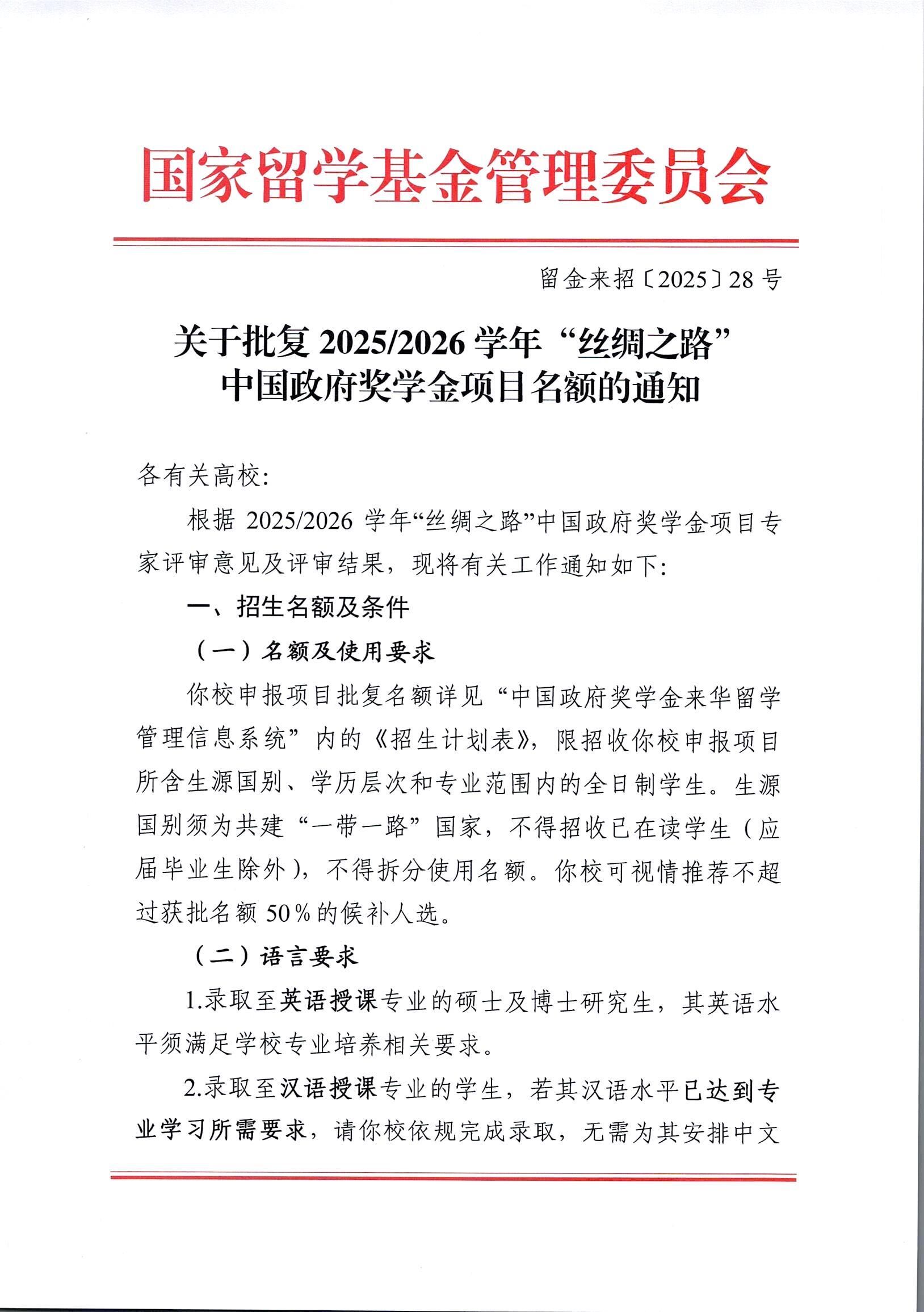 我院获批两类中国政府奖学金项目