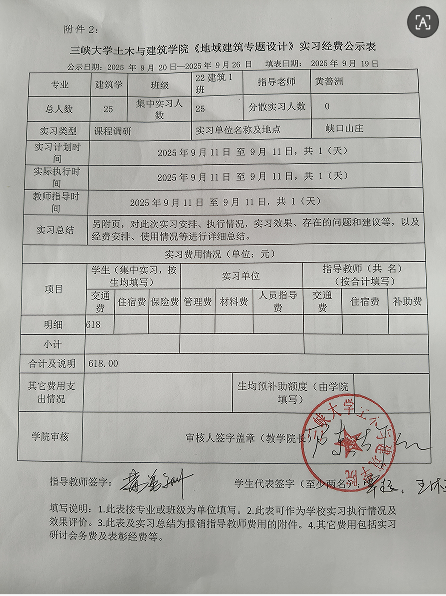 三峡大学土木与建筑学院《地域建筑专题设计》实习经费公示表