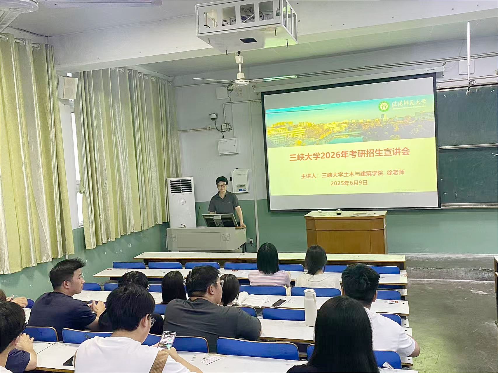 6月9日晚19点,徐潇宇老师在信阳师范大学教二T5教室进行了宣讲工作,信阳师范大学建筑与土木工程学院副院长袁晓辉、道桥系主任丁昊、胡兵立老师、吴志强老师及意向考研学生参加了宣讲会。