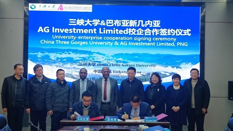 签约仪式由国际合作与交流处处长上官燕主持。土木与建筑学院执行院长邓华锋与AG Investment Limited, PNG董事长Allan Guo (郭超)先生共同签署了《三峡大学与AG Investment Limited战略合作协议》。